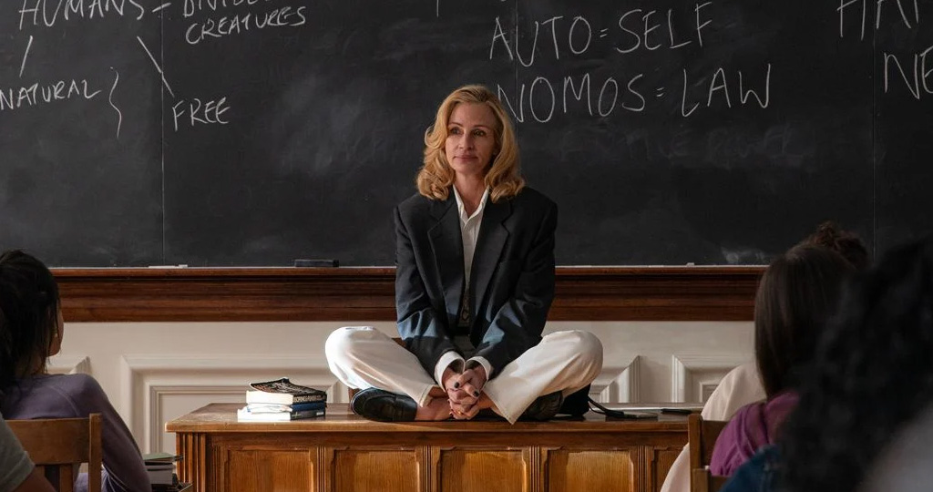 Herbst 2019, das Leben an der amerikanischen Eliteuniversität läuft ab wie seit Jahrzehnten, auch wenn der Elfenbeinturm ein paar Risse aufweist. Kluge, stets ein wenig zur Selbstgefälligkeit neigende Menschen diskutieren und trinken dabei erstaunlich viel Alkohol. Besonders Alma Olsson (Julia Roberts), Professorin für Philosophie, eine beeindruckende Persönlichkeit, verehrt und geliebt von ihrem Mann Frederik (Michael Stuhlbarg), passenderweise ein Psychologe, ihrem Kollegen Hank (Andrew Garfield), der keiner Frau begegnet, ohne einen Flirt zu versuchen, und ihrer Doktorandin Maggie (Ayo Edebiri), einer Feministin der jüngeren Generation.