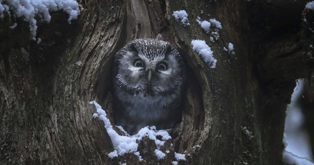 „Glaubst du, wir sehen Auerhähne?“, fragt der neugierige Enkel besorgt. Er liegt in Wartesstellung auf der Lauer und muss sich zunächst mit den reflektierenden Augen einer Eule begnügen. Auerhühner sind so selten wie scheu und vom Aussterben bedroht. Aber selbstverständlich werden weder der Enkel noch das Publikum enttäuscht: Mit einem prächtigen Balz-Auftritt präsentiert sich der größte europäische Hühnervogel mit prägnantem Glucksen in Bestform. Geräusche spielen immer wieder eine große Rolle in dieser Doku. Vom Flügelschlag-Getöse eines riesigen Vogelschwarms bis zum unvermeidlichen Röhren der Hirsche. Als Kontrast herrscht immer wieder Stille, erst recht, wenn der Schnee den Sound der Natur gedämpft in Watte packt. Für die Drei- Generationen-Expedition ist derweil Ruhe erste Beobachterpflicht. Geduld und Warten werden belohnt. „Mein erster Luchs!“ freut sich der erfahrene Waldkenner Michel, derweil sich der Enkel für niedliche Eulenkinder begeistert und der Vater fasziniert ist von Vögeln, die unter der Rinde toter Bäume ein neues Zuhause finden.