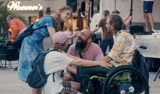 Annelie Boros lässt in ihrem Dokumentarfilm Menschen zu Wort kommen, denen sonst, wenn überhaupt, nur widerwillig zugehört wird. Da ist die polnische Pflegerin Bozena, die hier in Deutschland ihre Patienten rund um die Uhr betreut und dafür in Kauf genommen hat, dass es in ihrem eigenen Leben zu fundamentalen Änderungen gekommen ist. Jetzt unterstützt Bozena andere Betroffene in ihrem Kampf um ein menschenwürdigeres Pflegen für Patienten und Pflegende. Wir lernen den mit einem herrlich losen Mundwerk gesegneten Hamburger Arnold kennen, der sich 24 Stunden am Tag um seinen behinderten Sohn Nico kümmert. Trotzdem findet Arnold auch noch die Zeit, sich für die dringend notwendige Verbesserung der Situation pflegender Angehöriger einzusetzen. Die Klimaaktivistin Amanda erzählt uns davon, wie der Klimawandel den Lebensraum ihrer Familie in Peru zerstört, und erklärt, warum es einen Zusammenhang zwischen einer gesunden Erde und gesunden Menschen gibt. Und da ist natürlich noch der eingangs erwähnte Rollstuhlfahrer Samuel, der auf vieles in seinem ohnehin schon eingeschränkten Leben verzichtet, um ein inklusives Wohnprojekt zu realisieren und um seine Situation auf politischem Weg zu verbessern. Schließlich bringt Frau Boros auch noch ihre eigenen Erfahrungen in den Film mit ein: Sie erzählt vom unerwarteten Selbstmord eines WG-Mitbewohners und fragt beharrlich, ob er in einer liebevolleren, fürsorglicheren Welt vielleicht noch am Leben wäre.